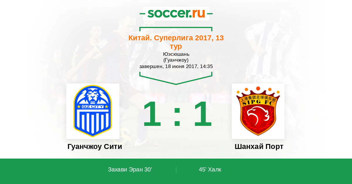 Протокол матча Гуанчжоу Сити против Шанхай Порт