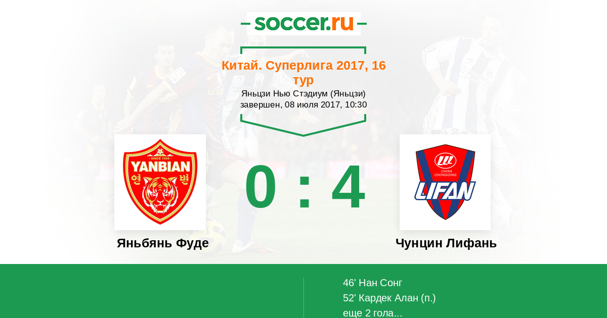 Протокол матча Яньбянь Фуде против Чунцин Лифань