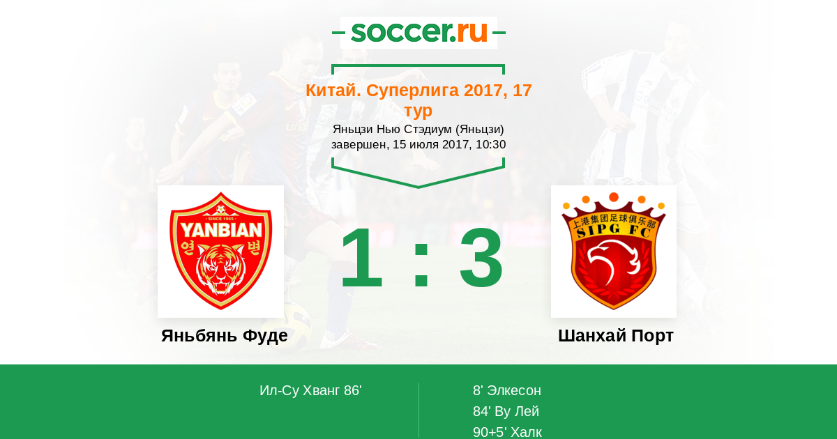 Протокол матча Яньбянь Фуде против Шанхай Порт
