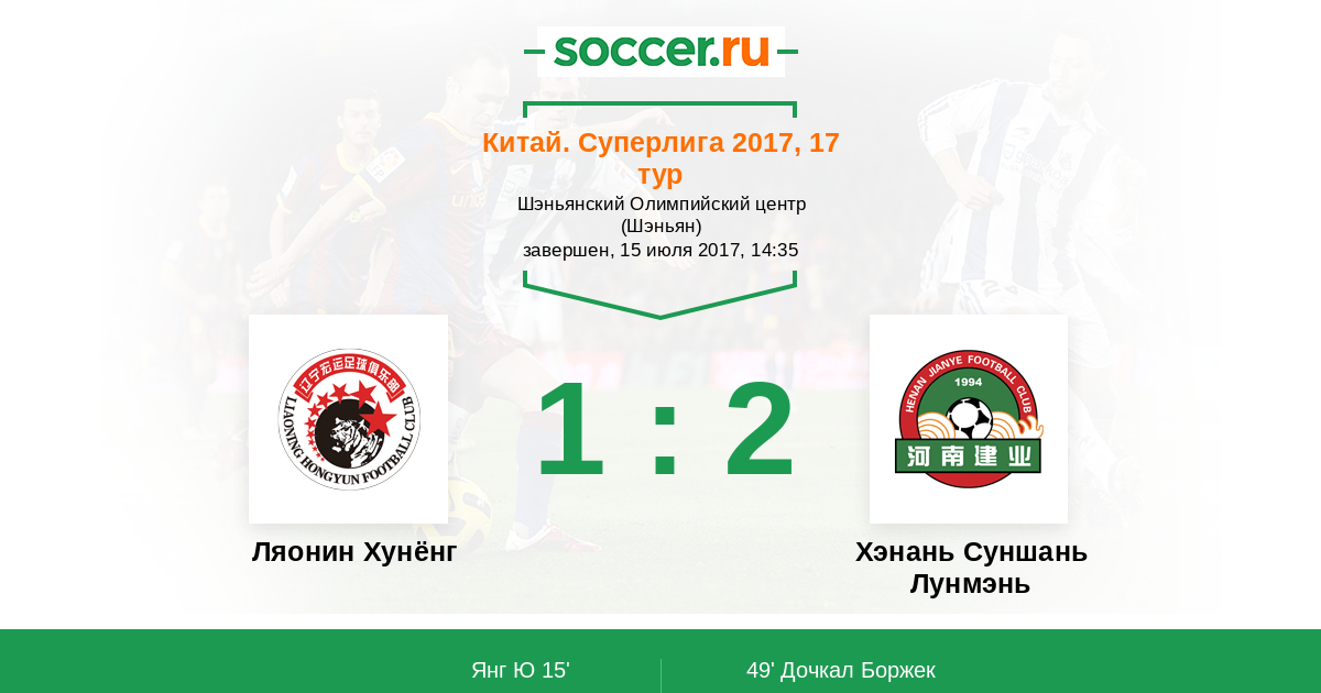Протокол матча Ляонин Хунёнг против Хэнань Суншань Лунмэнь