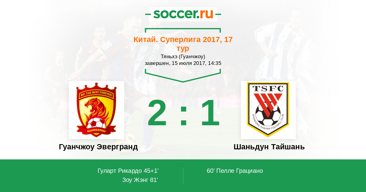 Протокол матча Гуанчжоу Эвергранд против Шаньдун Тайшань