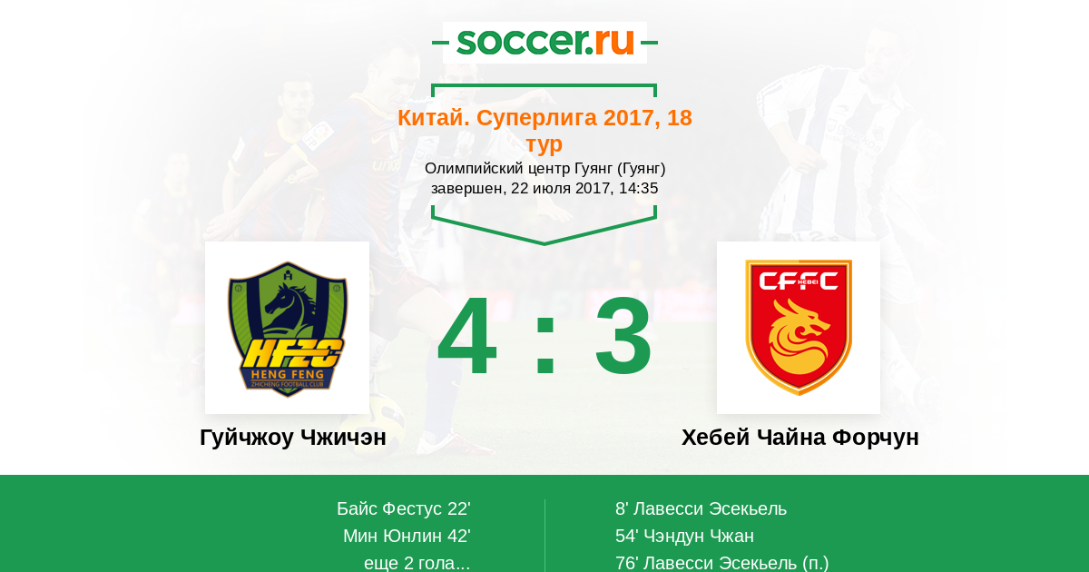 Протокол матча Гуйчжоу Чжичэн против Хебей Чайна Форчун