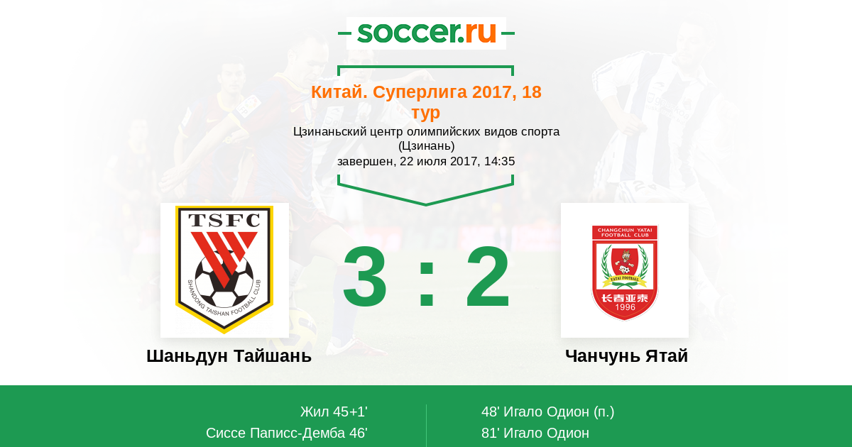 Протокол матча Шаньдун Тайшань против Чанчунь Ятай