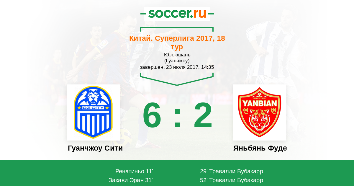 Протокол матча Гуанчжоу Сити против Яньбянь Фуде