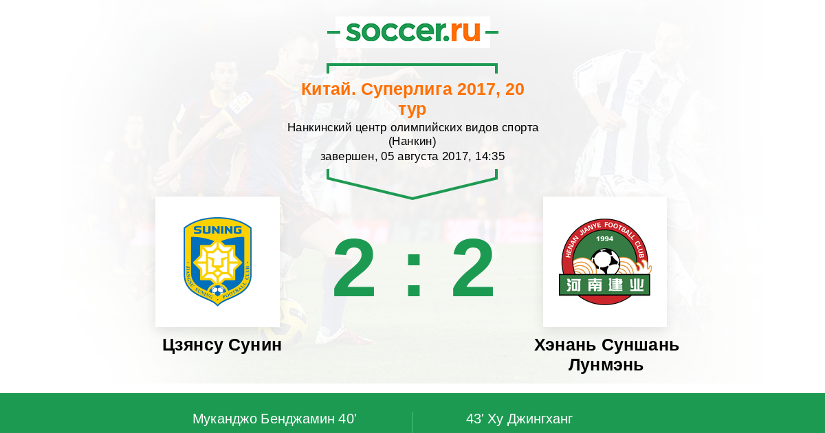 Протокол матча Цзянсу Сунин против Хэнань Суншань Лунмэнь