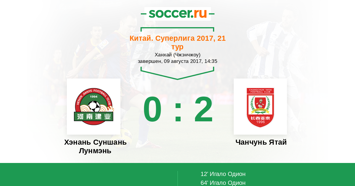 Протокол матча Хэнань Суншань Лунмэнь против Чанчунь Ятай