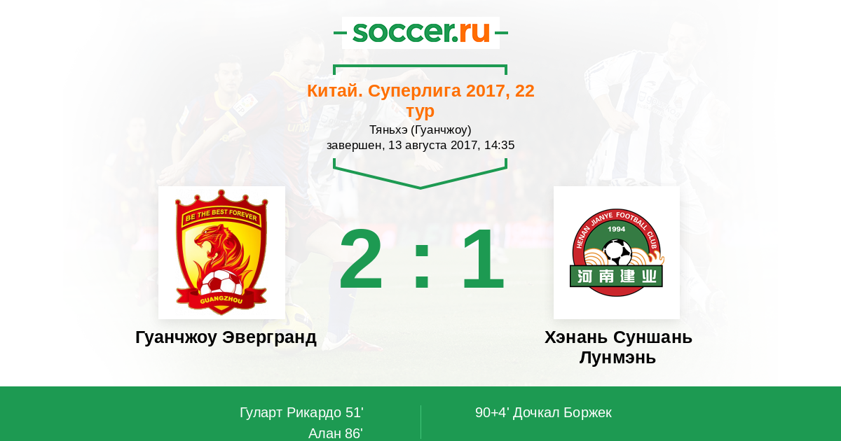 Протокол матча Гуанчжоу Эвергранд против Хэнань Суншань Лунмэнь