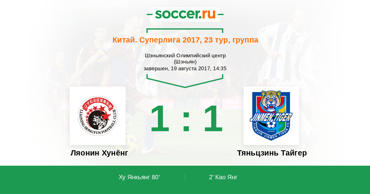 Протокол матча Ляонин Хунёнг против Тяньцзинь Тайгер