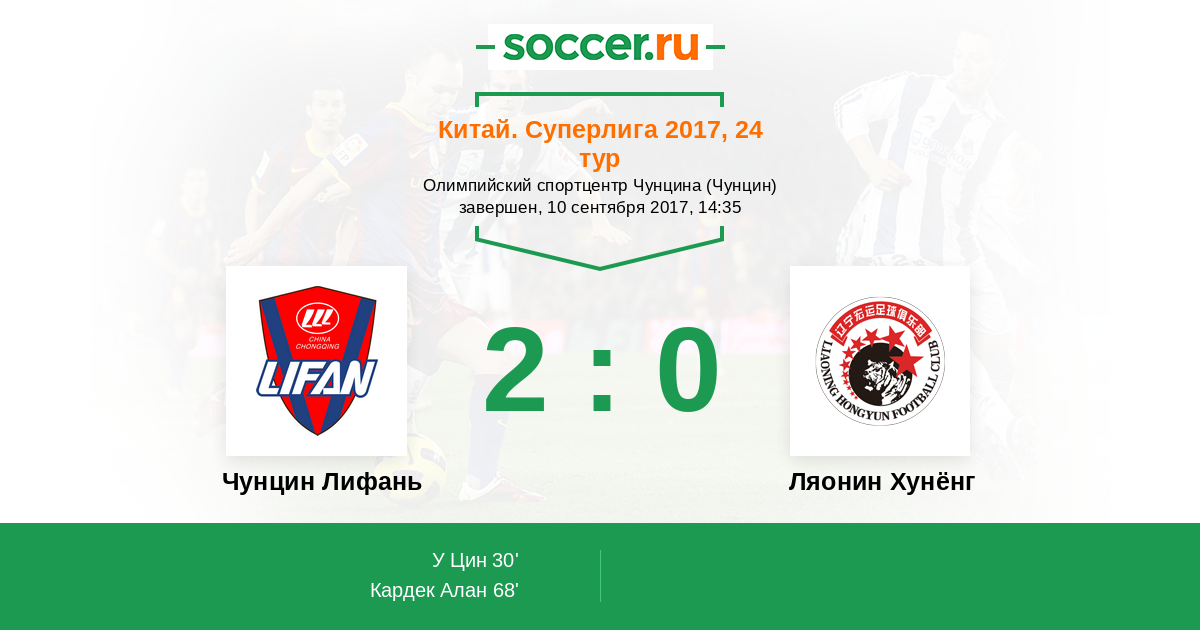 Протокол матча Чунцин Лифань против Ляонин Хунёнг