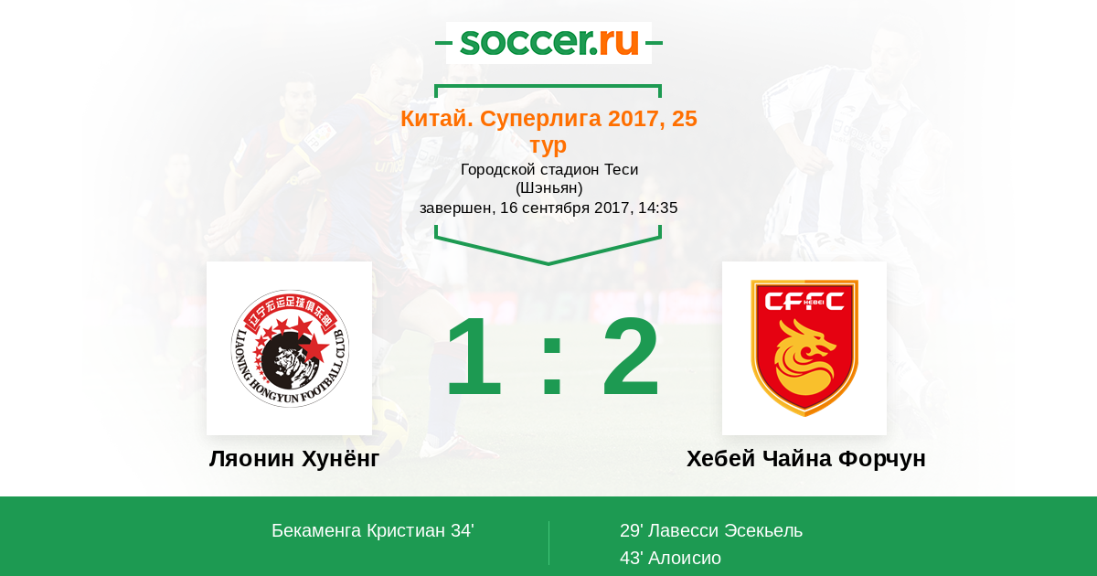 Протокол матча Ляонин Хунёнг против Хебей Чайна Форчун