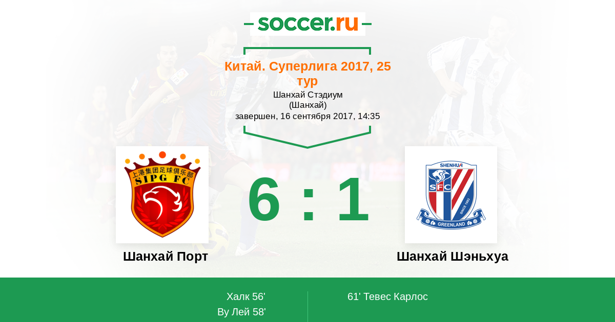 Протокол матча Шанхай Порт против Шанхай Шэньхуа