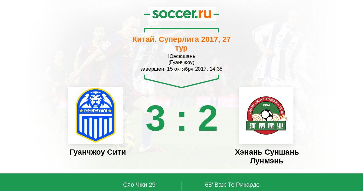 Протокол матча Гуанчжоу Сити против Хэнань Суншань Лунмэнь