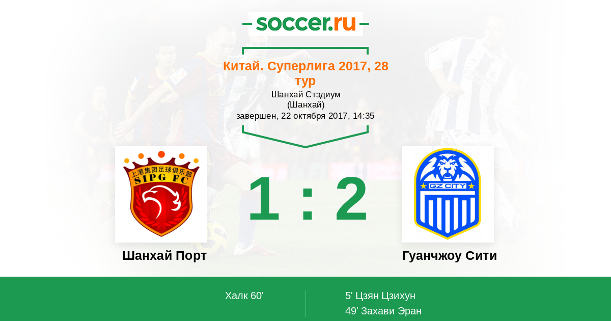 Протокол матча Шанхай Порт против Гуанчжоу Сити