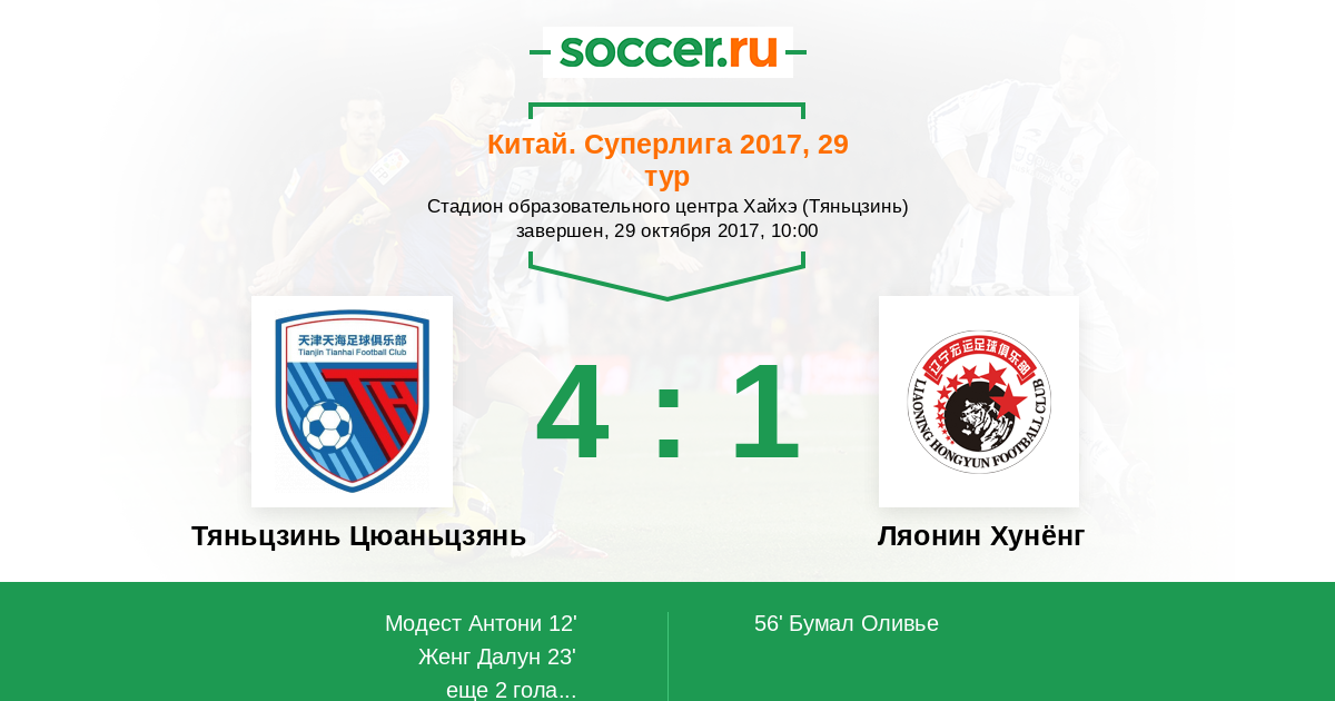 Протокол матча Тяньцзинь Цюаньцзянь против Ляонин Хунёнг