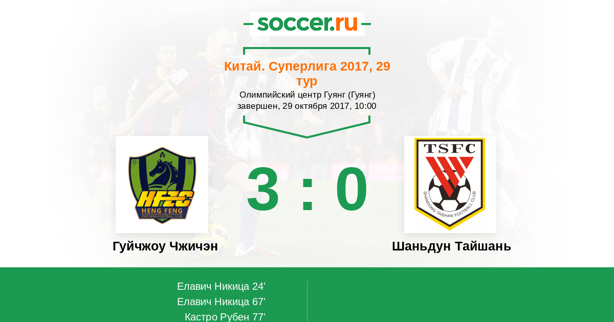 Протокол матча Гуйчжоу Чжичэн против Шаньдун Тайшань