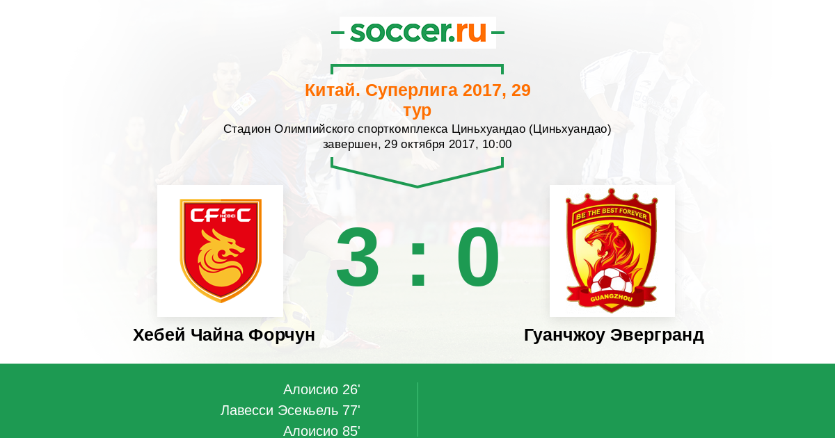 Протокол матча Хебей Чайна Форчун против Гуанчжоу Эвергранд