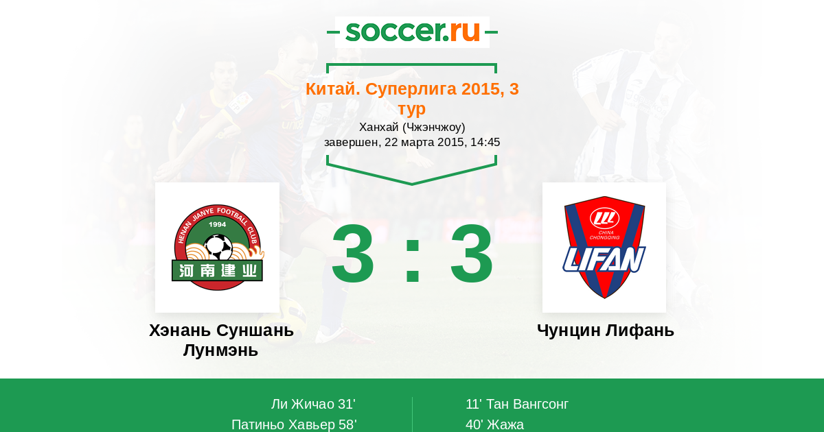 Протокол матча Хэнань Суншань Лунмэнь против Чунцин Лифань
