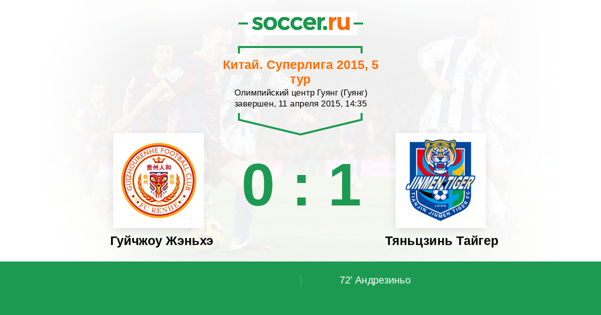Протокол матча Гуйчжоу Жэньхэ против Тяньцзинь Тайгер