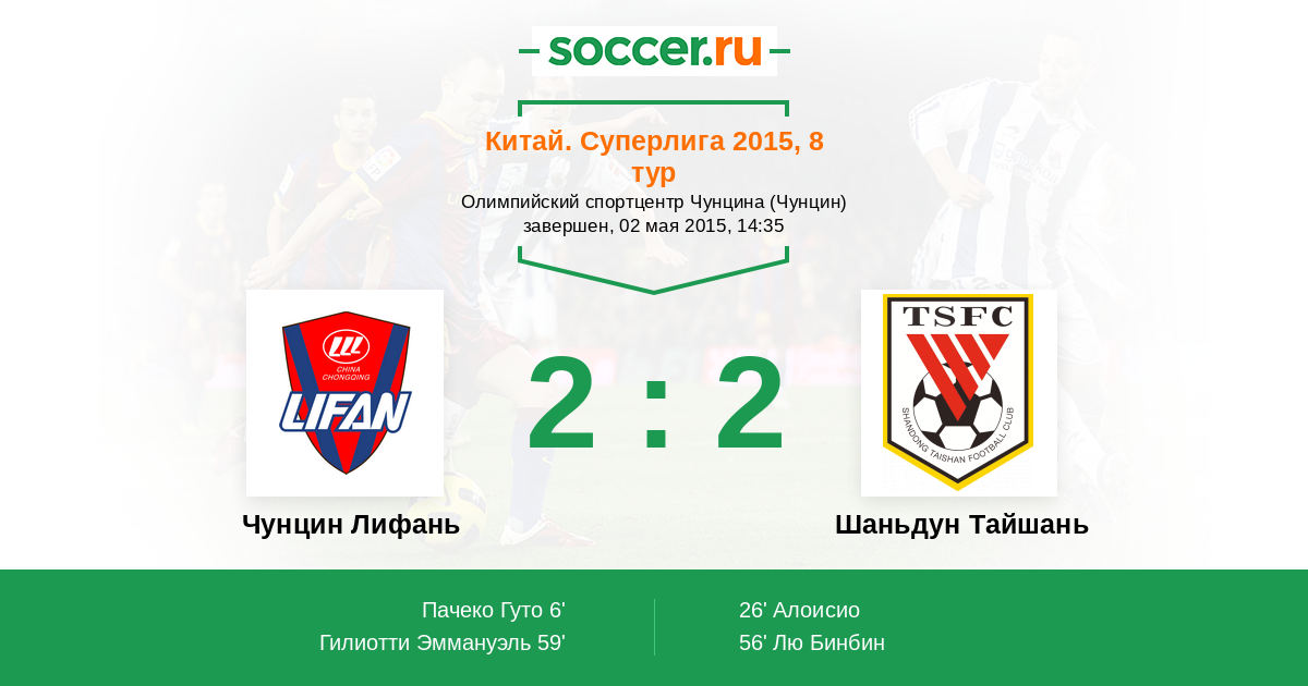 Протокол матча Чунцин Лифань против Шаньдун Тайшань