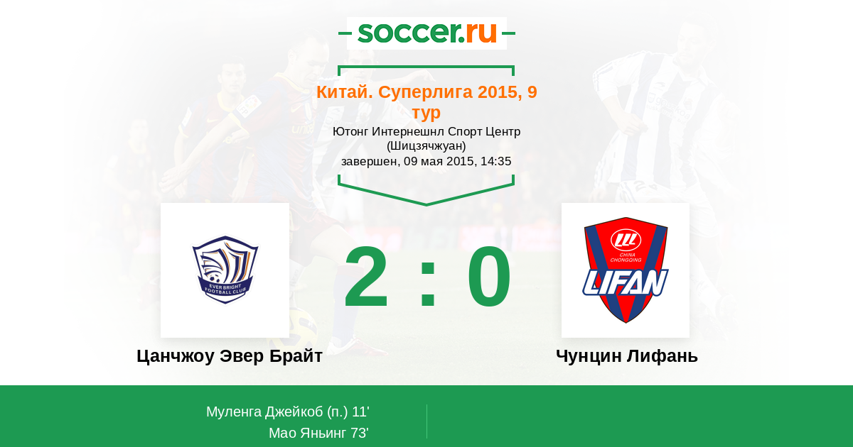 Протокол матча Цанчжоу Эвер Брайт против Чунцин Лифань