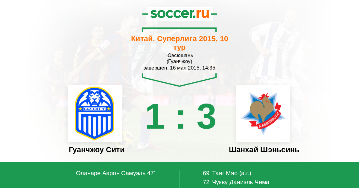 Протокол матча Гуанчжоу Сити против Шанхай Шэньсинь