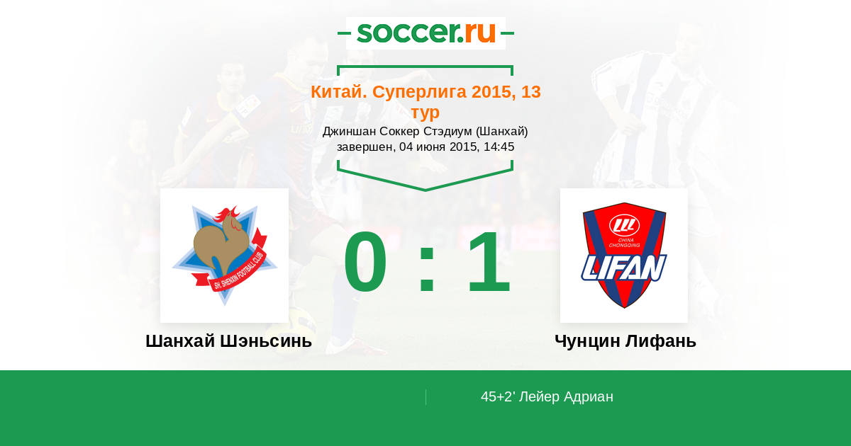45+2' (0:1) Лейер Адриан (35) (Ванг Донг (6))
