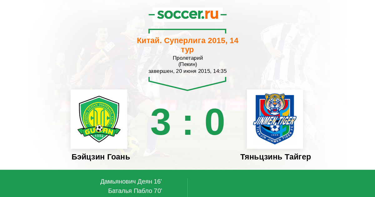 Протокол матча Бэйцзин Гоань против Тяньцзинь Тайгер
