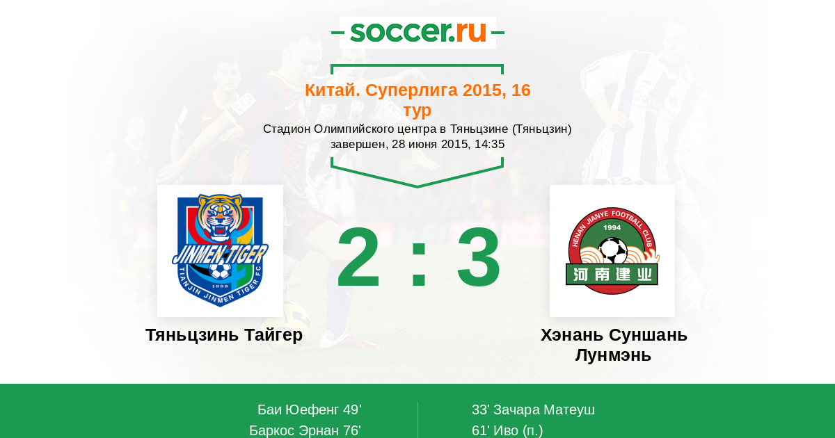 Протокол матча Тяньцзинь Тайгер против Хэнань Суншань Лунмэнь
