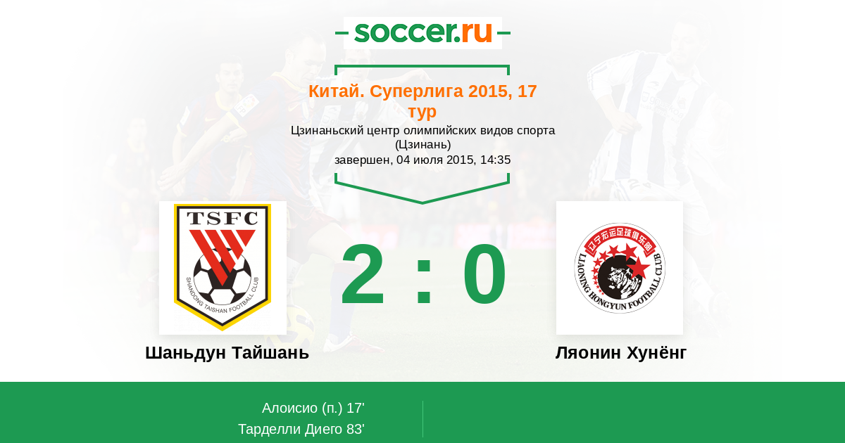 Протокол матча Шаньдун Тайшань против Ляонин Хунёнг