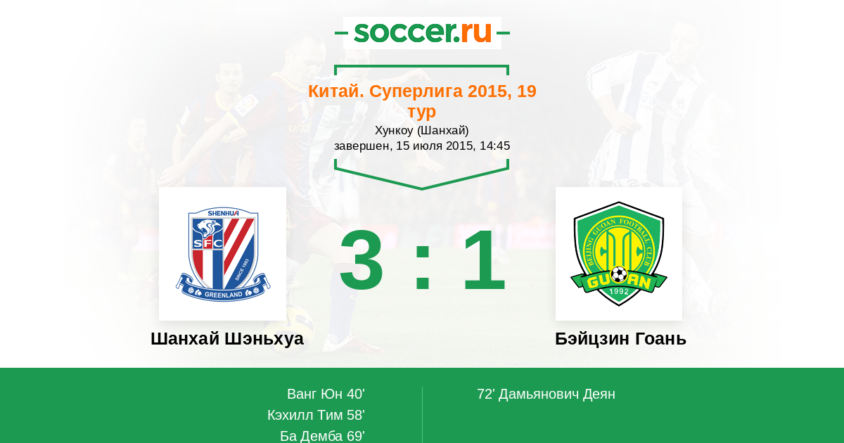 Протокол матча Шанхай Шэньхуа против Бэйцзин Гоань