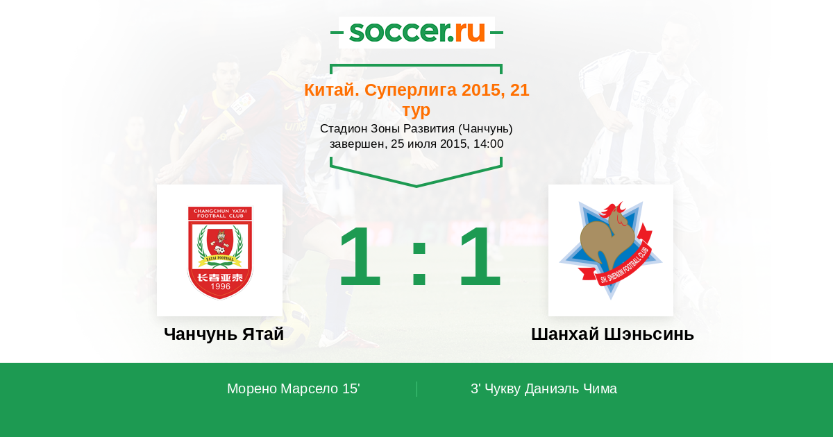 Протокол матча Чанчунь Ятай против Шанхай Шэньсинь