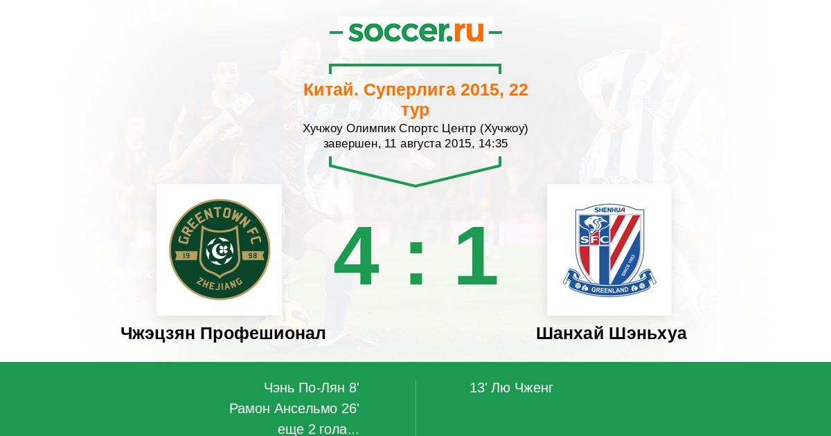 Протокол матча Чжэцзян Профешионал против Шанхай Шэньхуа