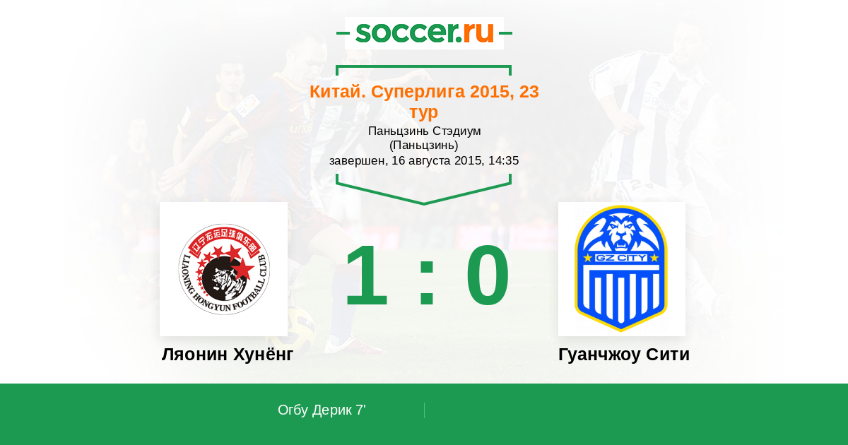 Протокол матча Ляонин Хунёнг против Гуанчжоу Сити