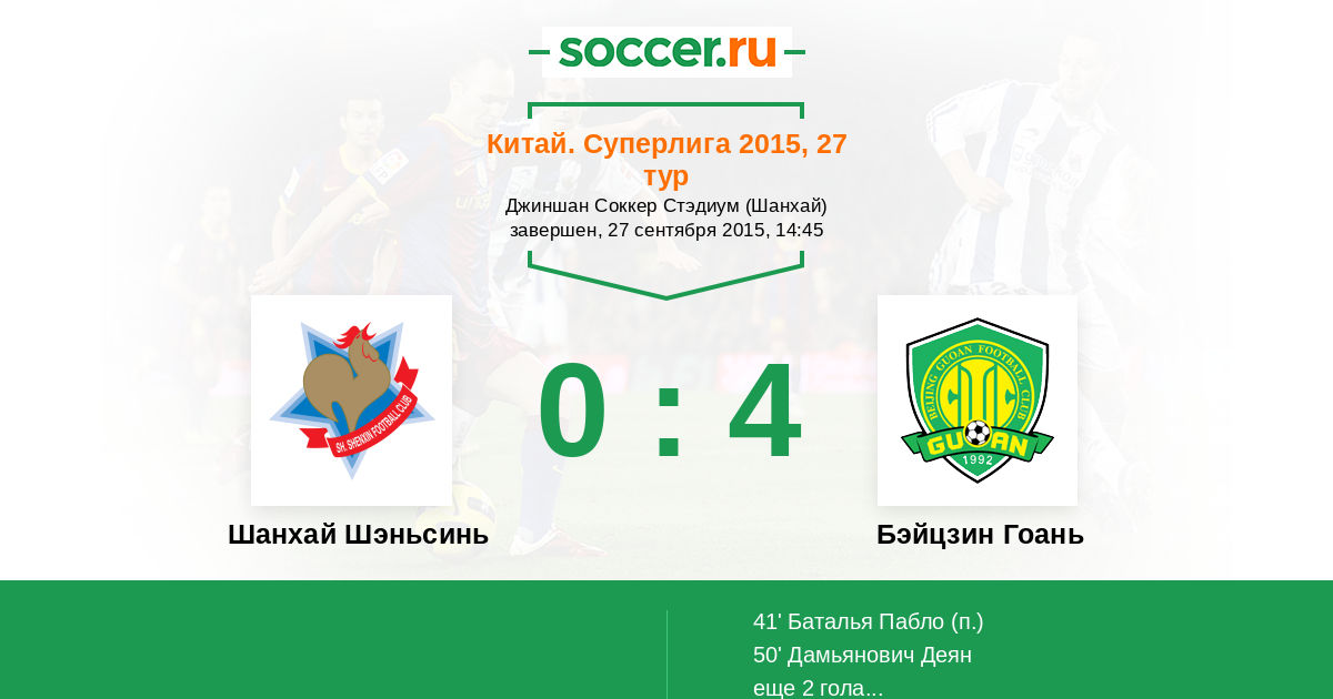 Протокол матча Шанхай Шэньсинь против Бэйцзин Гоань