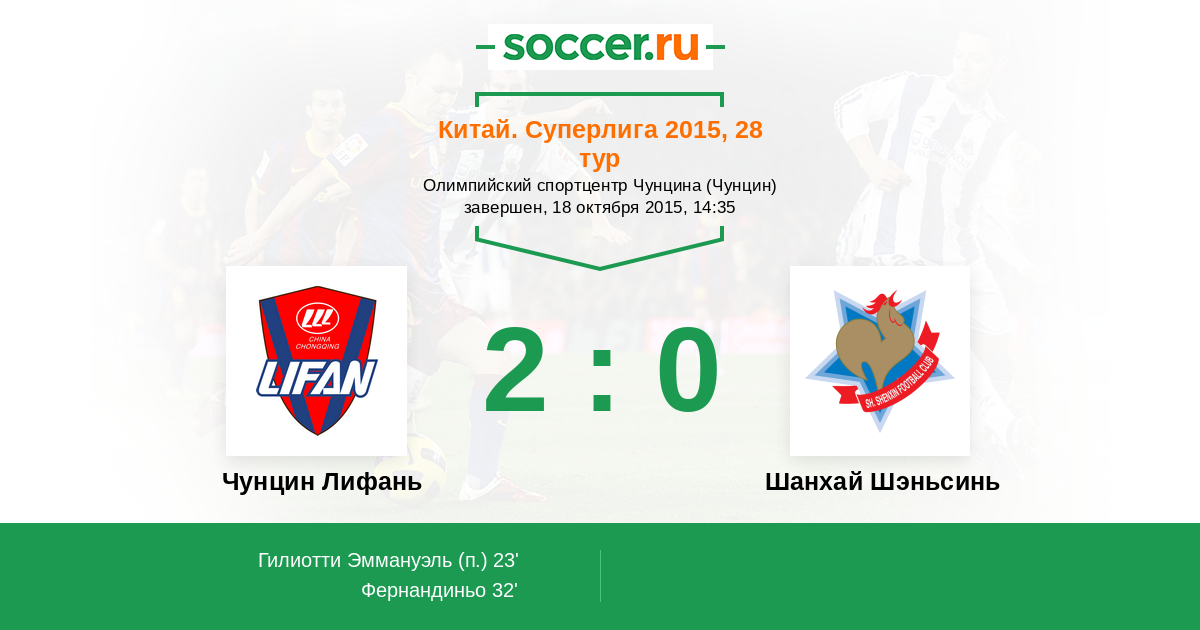 Протокол матча Чунцин Лифань против Шанхай Шэньсинь