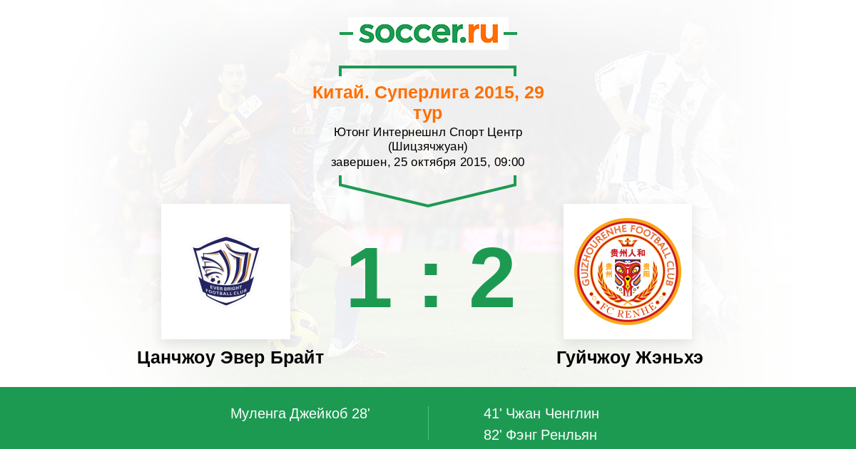 Протокол матча Цанчжоу Эвер Брайт против Гуйчжоу Жэньхэ
