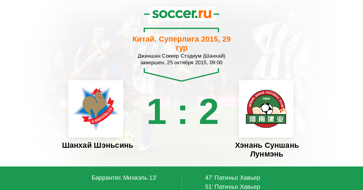 Протокол матча Шанхай Шэньсинь против Хэнань Суншань Лунмэнь