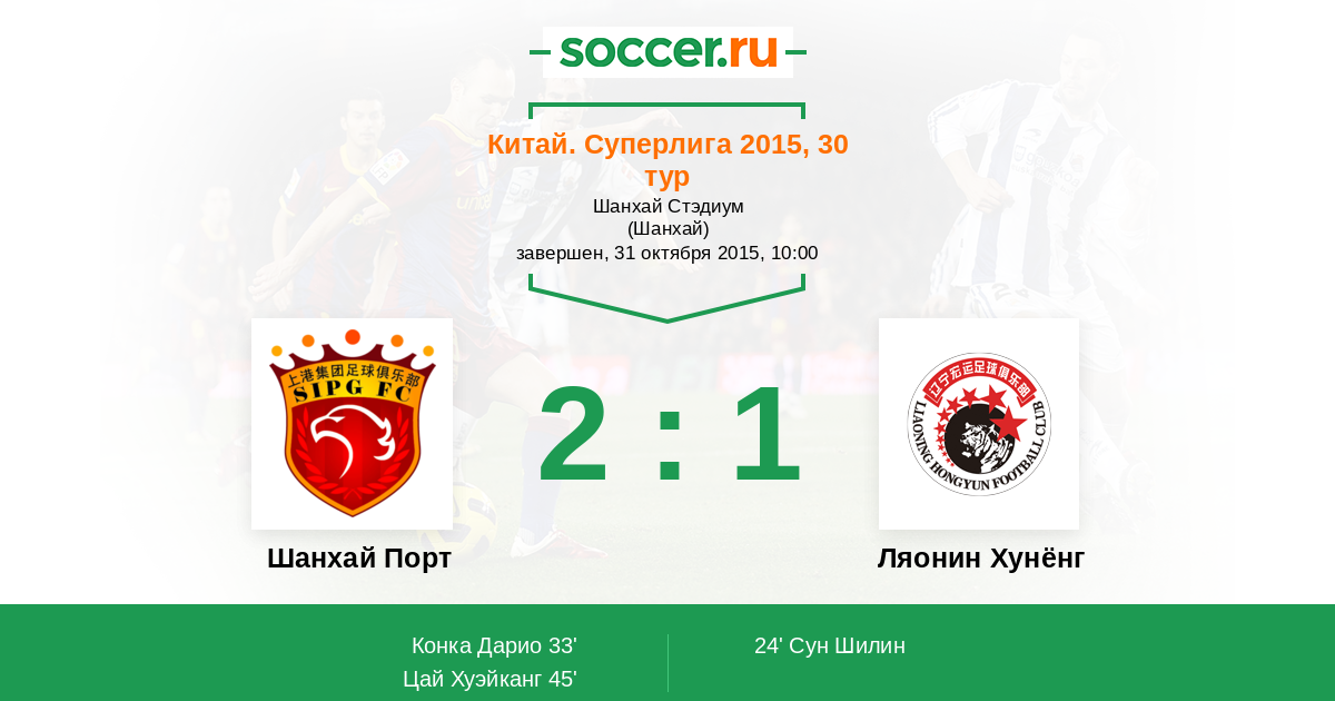 Протокол матча Шанхай Порт против Ляонин Хунёнг