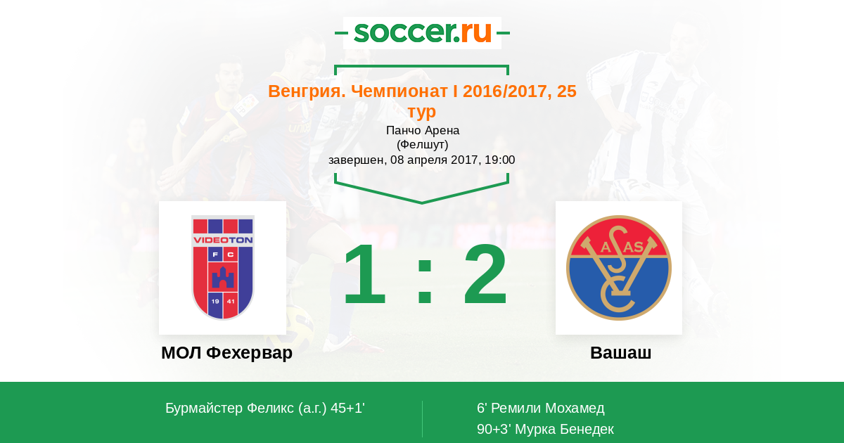 Протокол матча Видеотон против Вашаш