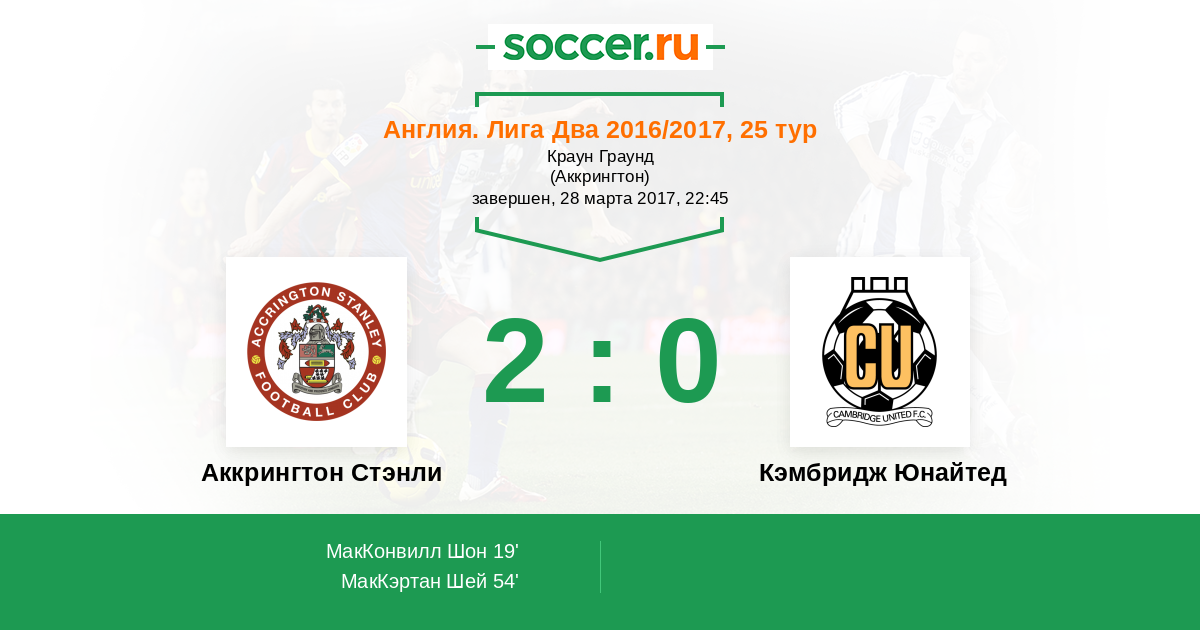 Протокол матча Аккрингтон Стэнли против Кэмбридж Юнайтед