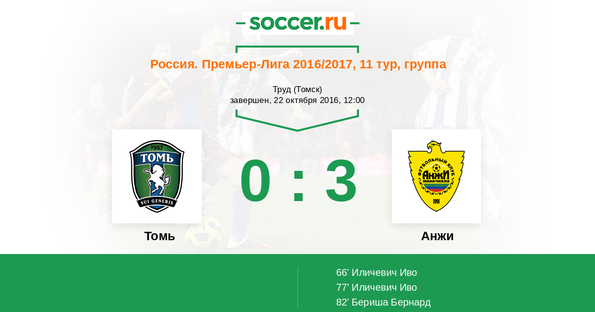 Протокол матча Томь против Анжи