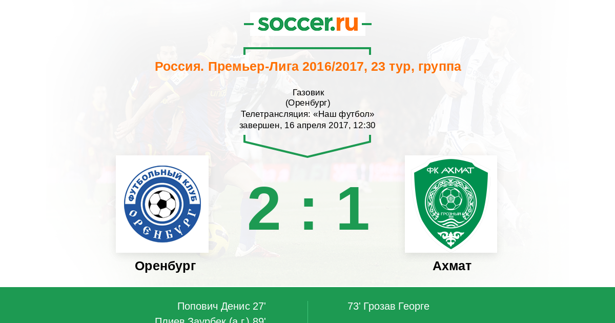Протокол матча Оренбург против Терек