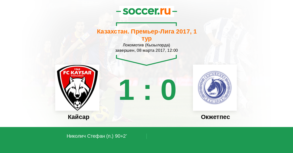 Протокол матча Кайсар против Окжетпес