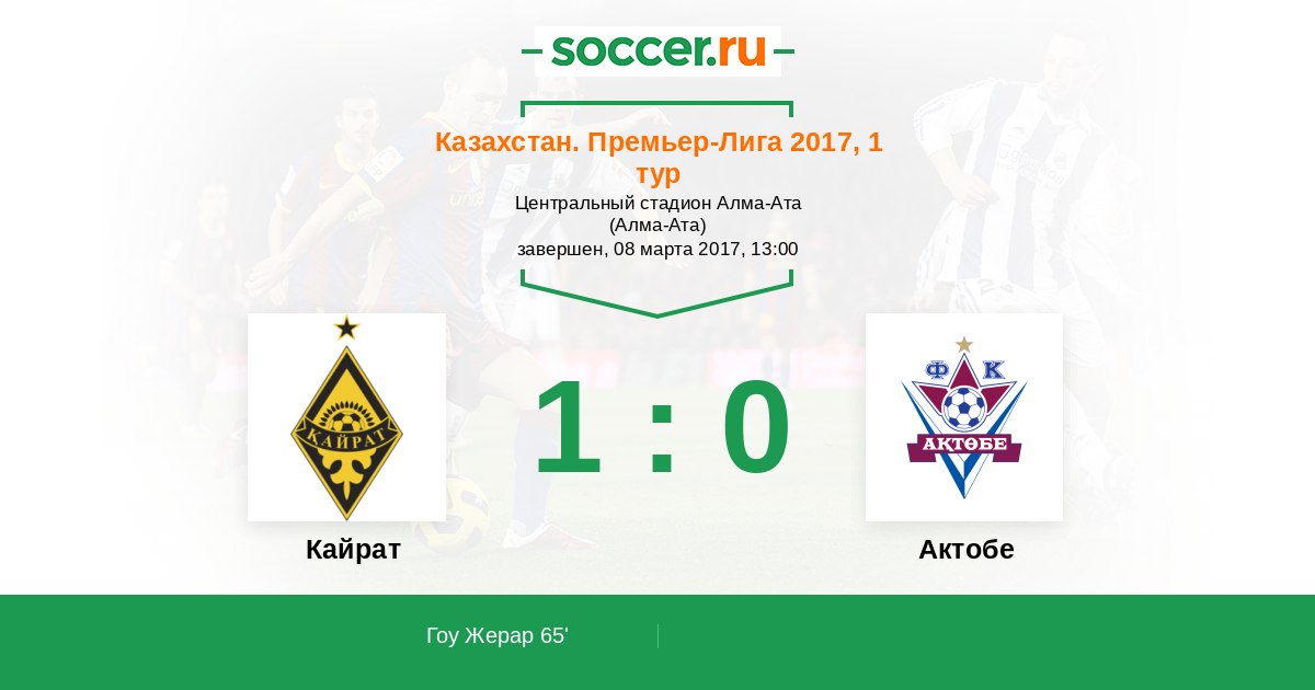 Протокол матча Кайрат против Актобе