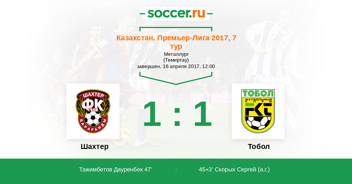 Протокол матча Шахтер против Тобол