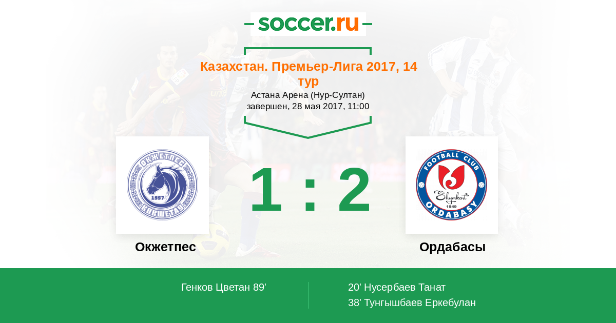 Протокол матча Окжетпес против Ордабасы