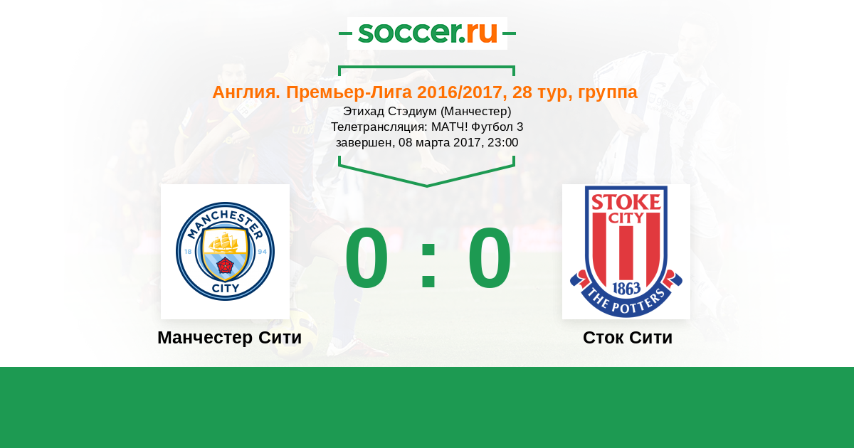 Протокол матча Манчестер Сити против Сток Сити