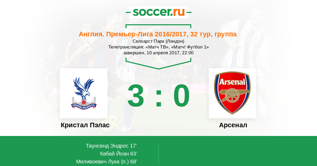 17' (1:0) Таунсенд Эндрос (10) (Заха Вилфрид (11))