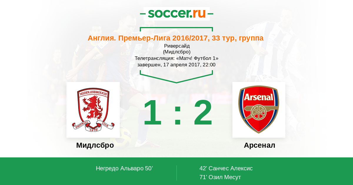 Протокол матча Мидлсбро против Арсенал