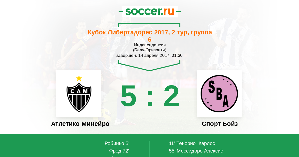 Протокол матча Атлетико Минейро против Спорт Бойз